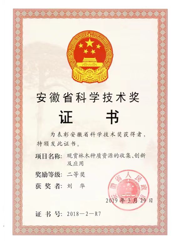 安徽省科学技术奖-观赏林木种质资源的收集、创新及应用